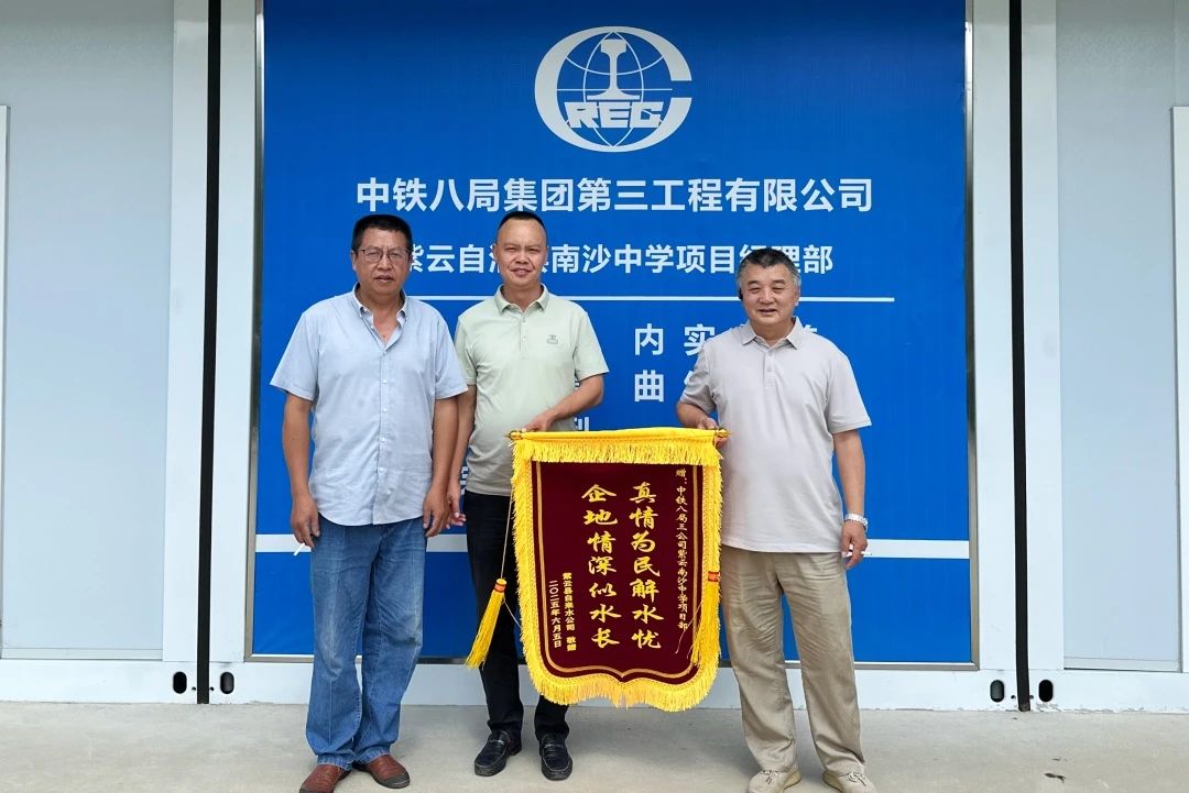 近日,紫云縣自來水公司向集團公司紫云南沙中學項目部贈送了一面印有“真情為民解水憂 企地情深似水長”的錦旗,對項目部在關鍵時刻伸出援手,高效解決甘橋村村民停水難題表示誠摯感謝。
